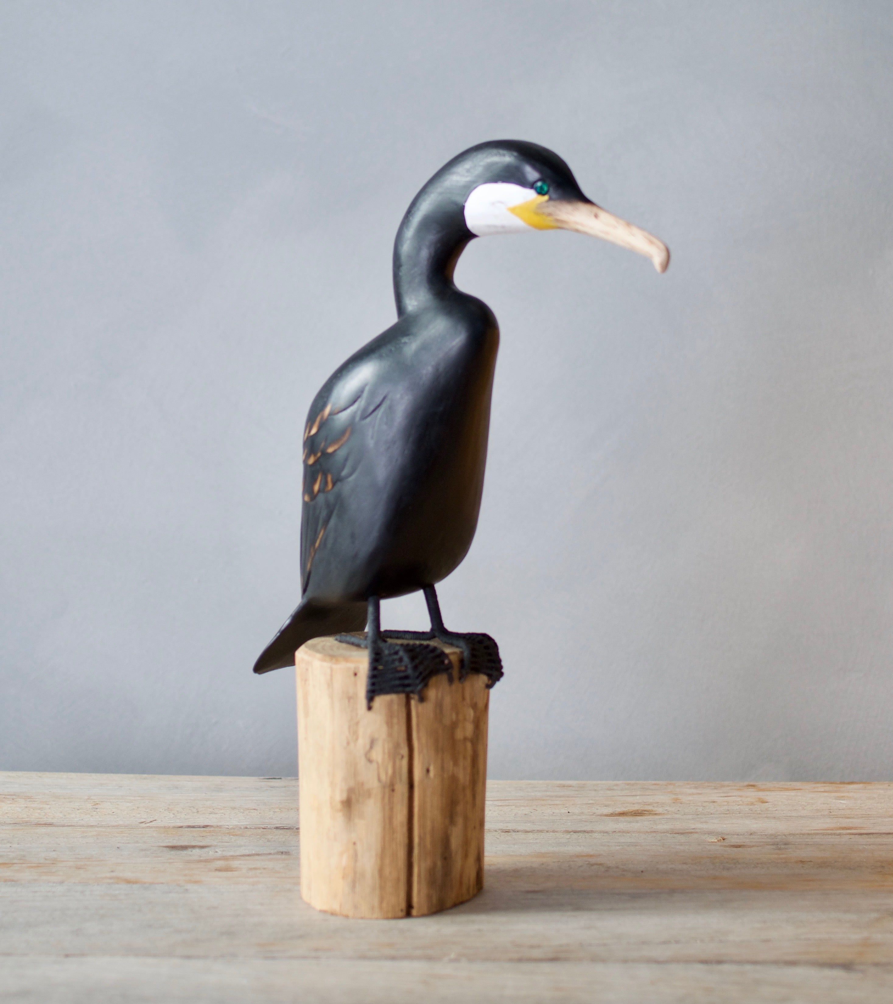 Hand Carved Wooden Cormorant Trio - Beautiful Decoys. Buy all three medium cormorants at a reduced price to create a magnificent display. (Can be purchased individually)